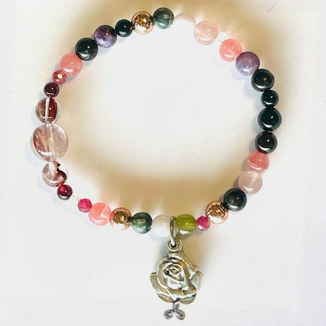── ☽⛧☾ ── ☦︎︎ Le Lit des Dieux : Le Corps Extatique L’Amour, la Mort, et puis… l’Extase. 私は肉体、私は祭壇 そしてあなたは私を燃やす神 私は肉体 私は祭壇 そしてあなたは私を灼く神 ── ☽⛧☾ ── ♰Composition♰ Seraphinite(セラフィナイト) Gibeon Meteorite(ギベオン) Black Tourmaline(ブラックトルマリン) Charoite(チャロアイト) Rhodochrosite(インカローズ) Pink Tourmaline(ピンクトルマリン) Almandine Garnet(アルマンディンガーネット) Limonite in Quartz(ライモナイトインクォーツ) Pink Fire Azeztulite(ピンクファイアーアゼツライト) Libyan Desert Glass(リビアングラス) Kunzite(クンツァイト) Sphene(スフェーン) Rose Quartz(ローズクォーツ) Jet(ジェット) Nuummite(ヌーマイト) St. Benedict Rose Medal(聖ベネディクト・ローズメダイ) ── ☽⛧☾ ── このブレスレットは「悦び=神性」の回路を開き、甘い光と黒い闇を同居させてブレない自分へ戻すための護符として愛と死と恍惚を円環で統合します。 神々と同化し それを超える霊的肉体としての覚醒を促す。 魂と肉体・エロスと祈り・悦びと神性 そのあわいに張り巡らされた 目に見えぬヴェールをこの装置は静かに しかし確実に取り払っていく。 祝福と封印を与え「愛と悦びそのものが祈り」 となる新たな霊性の扉を開くブレスレット。 ── ☽⛧☾ ── ♰ご購入にあたってのご案内♰ ☦︎︎こちらの商品は限定1点のみのご用意となります。(内径 約16cm) ☦︎︎ご購入から発送に関するご注意とお願い https://btr.base.ec/p/00003 ・天然石特有の色味や模様の個体差、またモニター環境による若干の色差がある場合がございます。 ・商品に欠陥がある場合を除き、返品はご遠慮ください。 ── ☽⛧☾ ── 私を焦がし 私の奥処を貫き 私をあなたの恍惚となせ 私は光 あなたは炎 そして―― あなたの祭壇の上で 私は神の化身と化す ── ☽⛧☾ ── https://www.instagram.com/beyond__the__reincarnation/p/DWGrVwjE-fd/