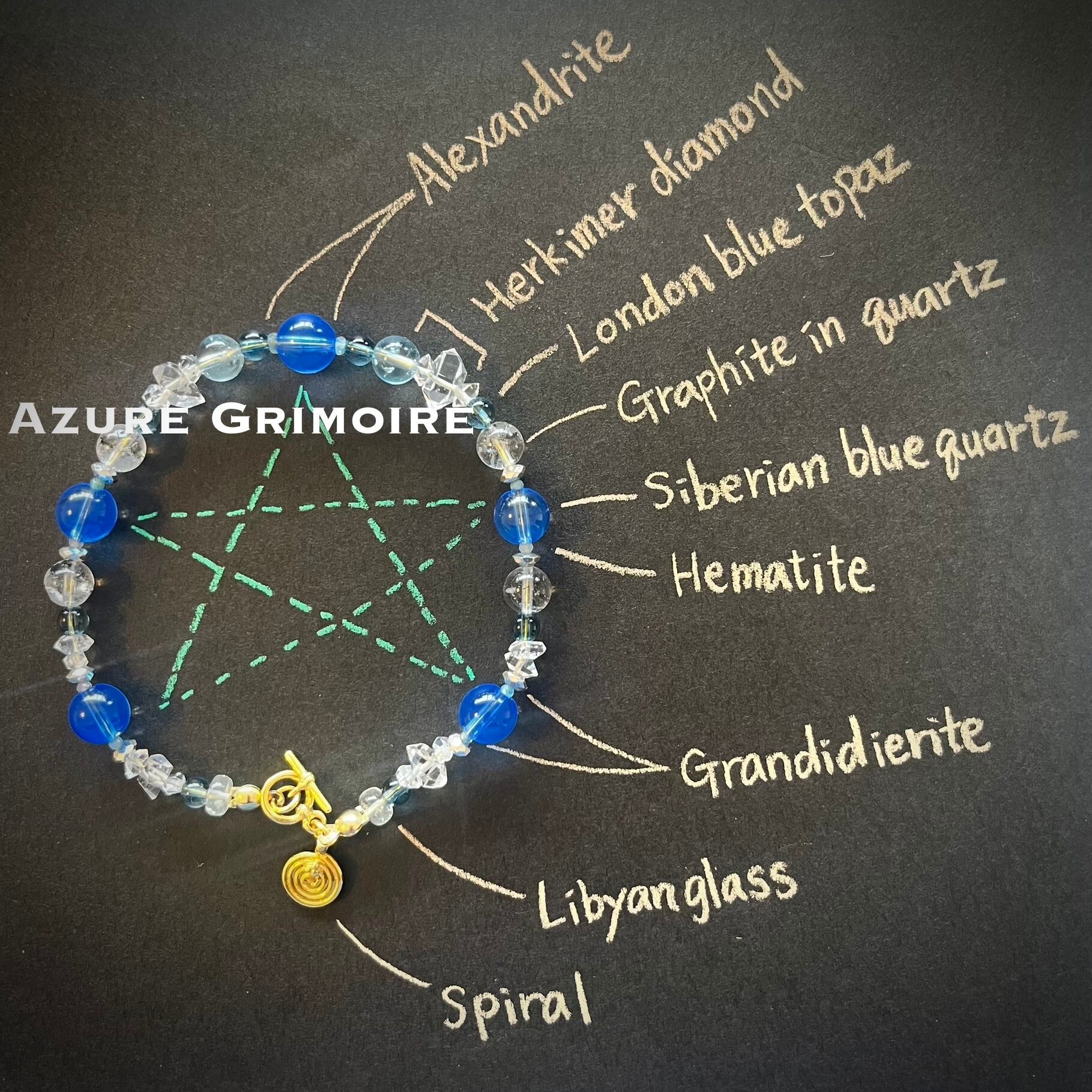 ☦︎︎秘儀 × スピリチュアル ☦︎︎ Azure Grimoire-青の魔導書 ☦︎︎ (シベリアンブルークォーツ× アレキサンドライト × グランディディエライト etc…魔術.高波動ブレスレット)