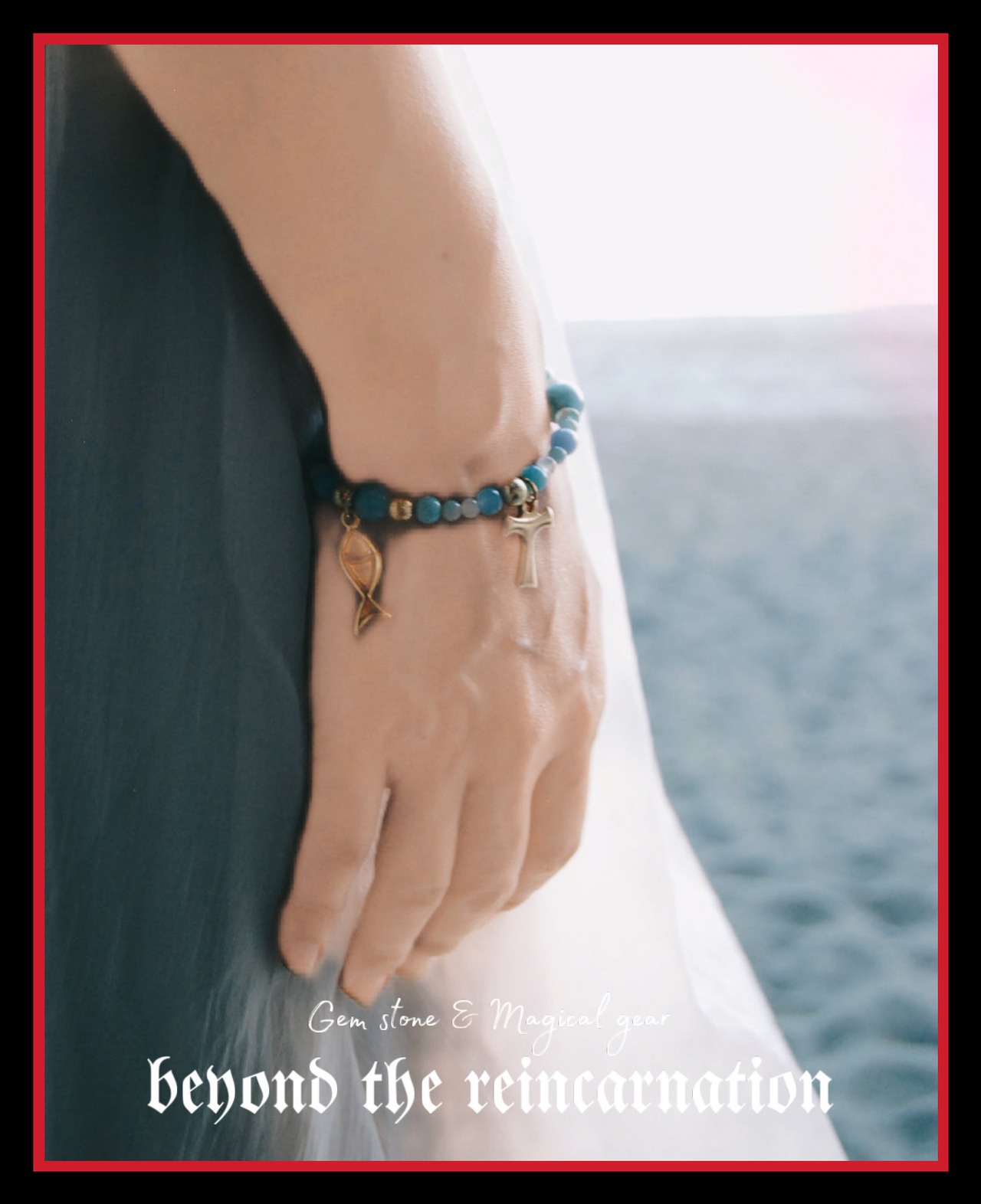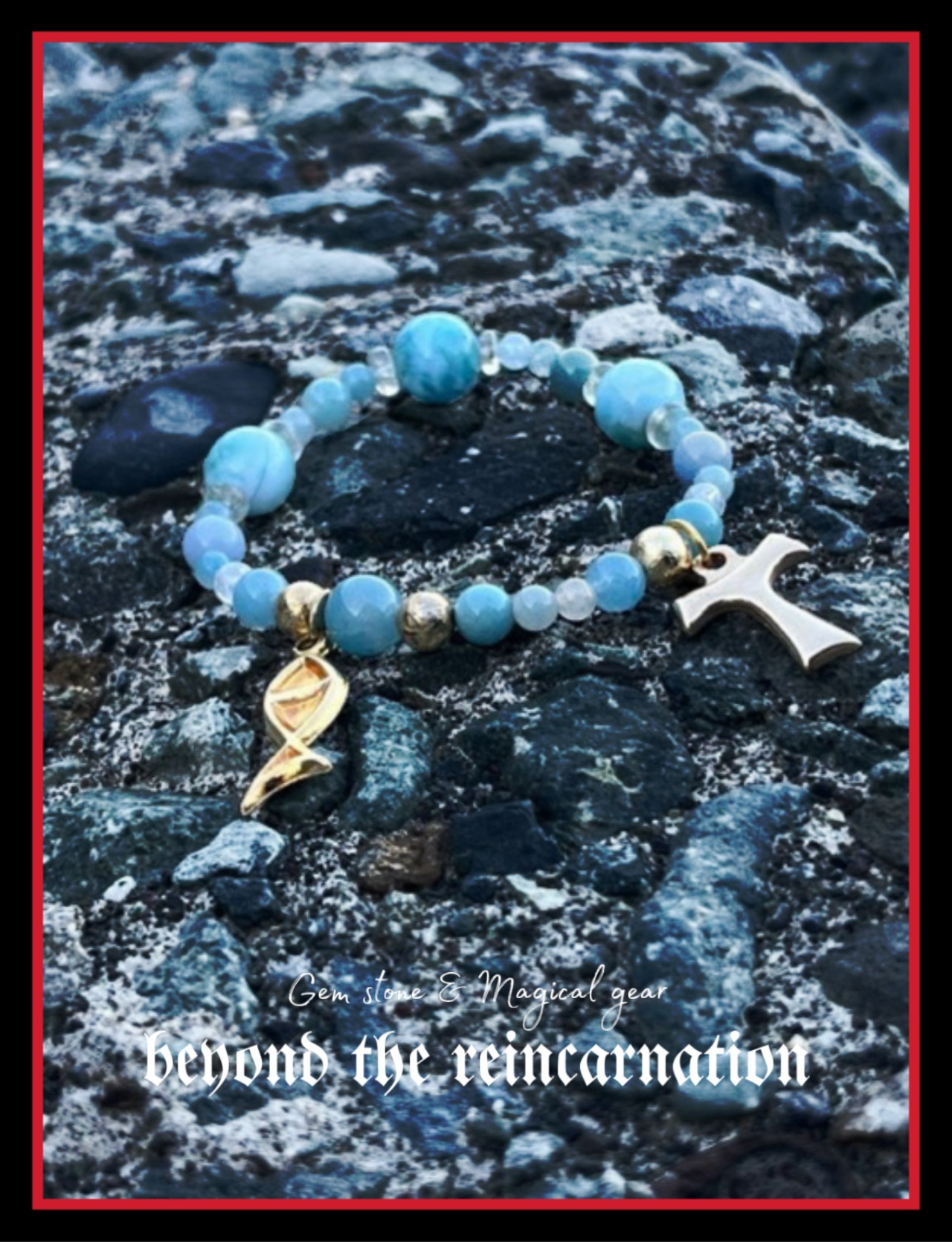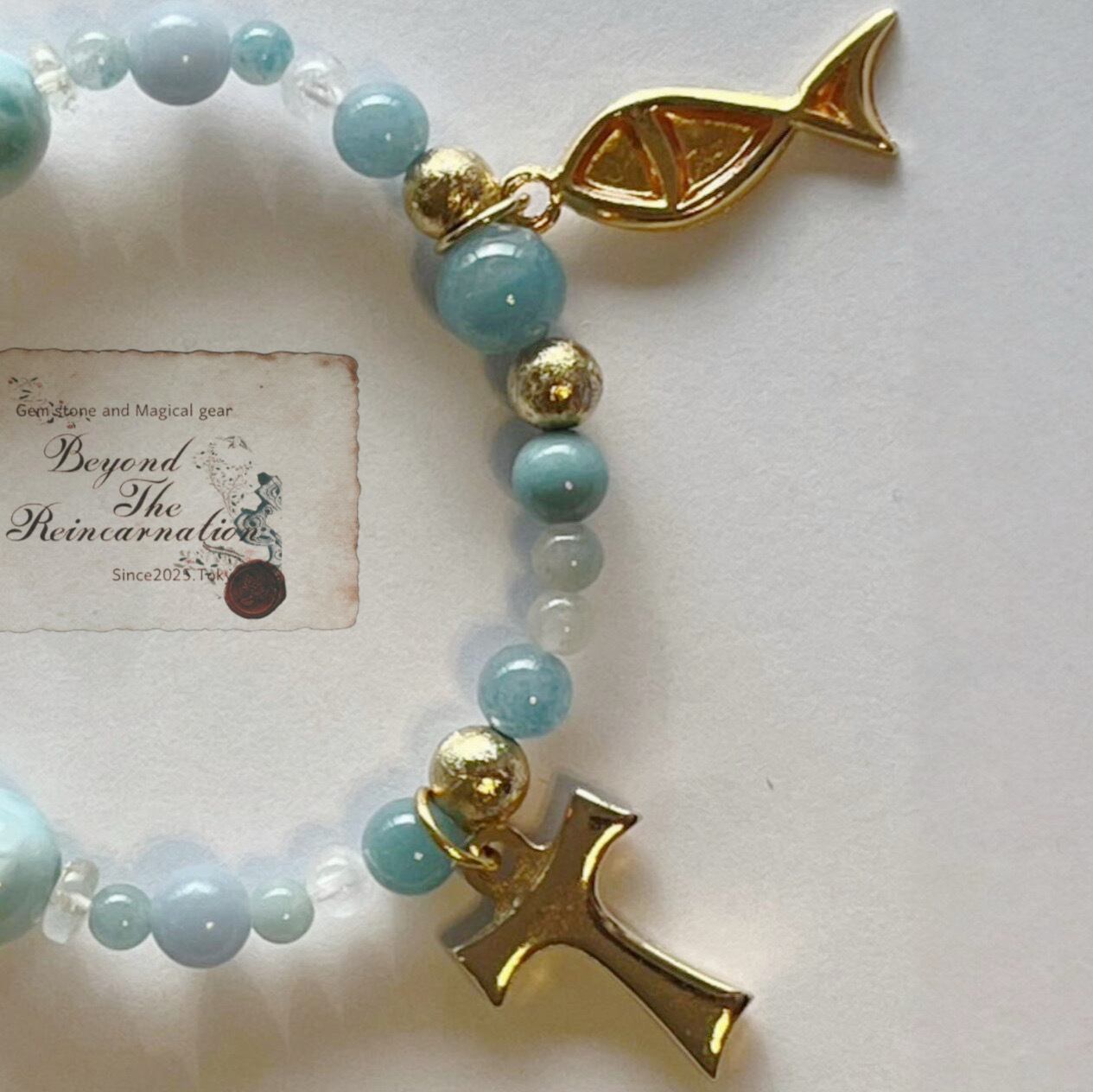 ☦︎︎ 守護・結界・魂の癒し|神秘ジュエリー・パワーストーン ☦︎︎ Celestial Bloom / Floraison Céleste -Trinité Trente-Trois - (ラリマー × ダンビュライト× リビアングラス × ギベオン etc…高波動ブレスレット)