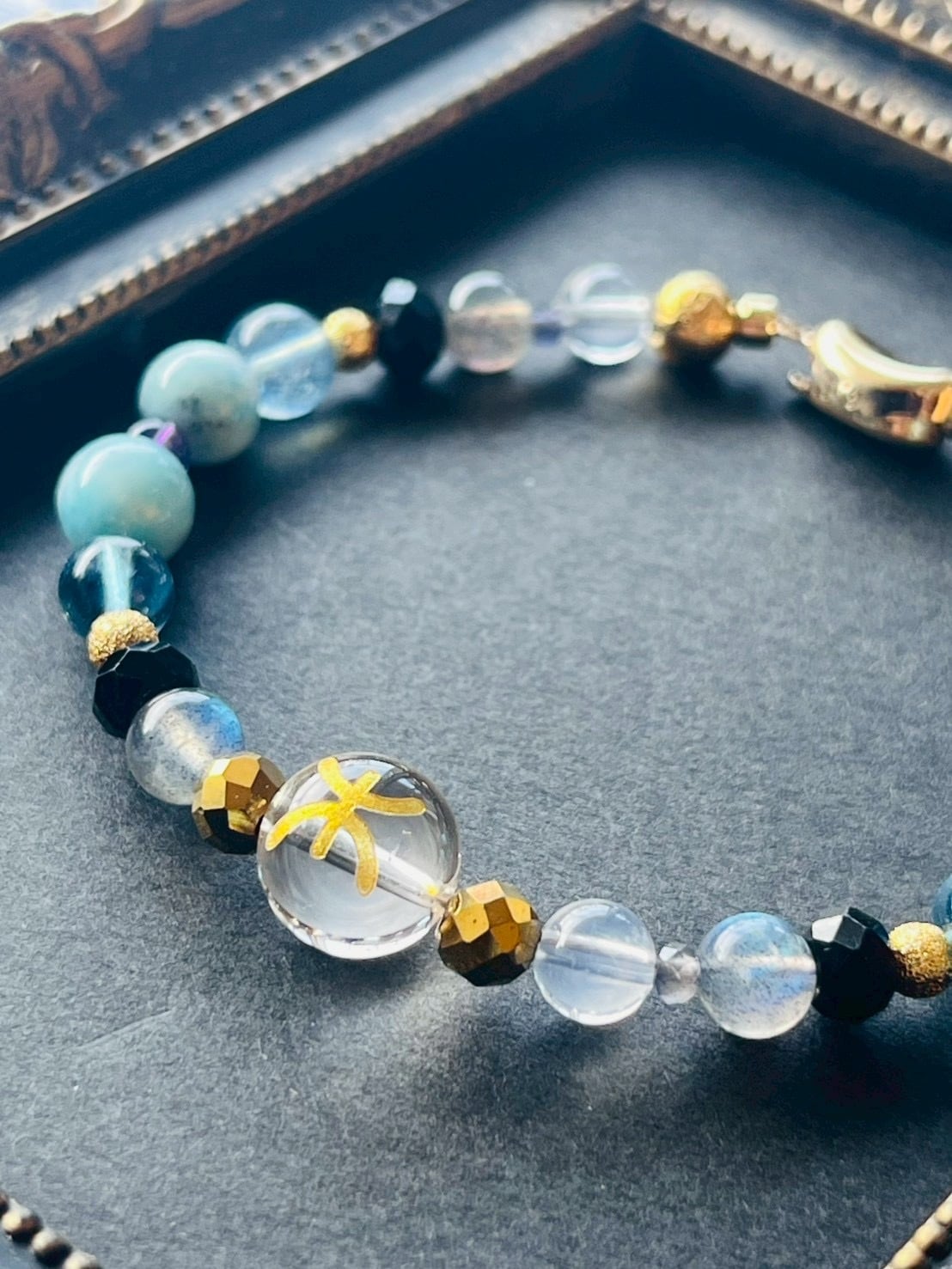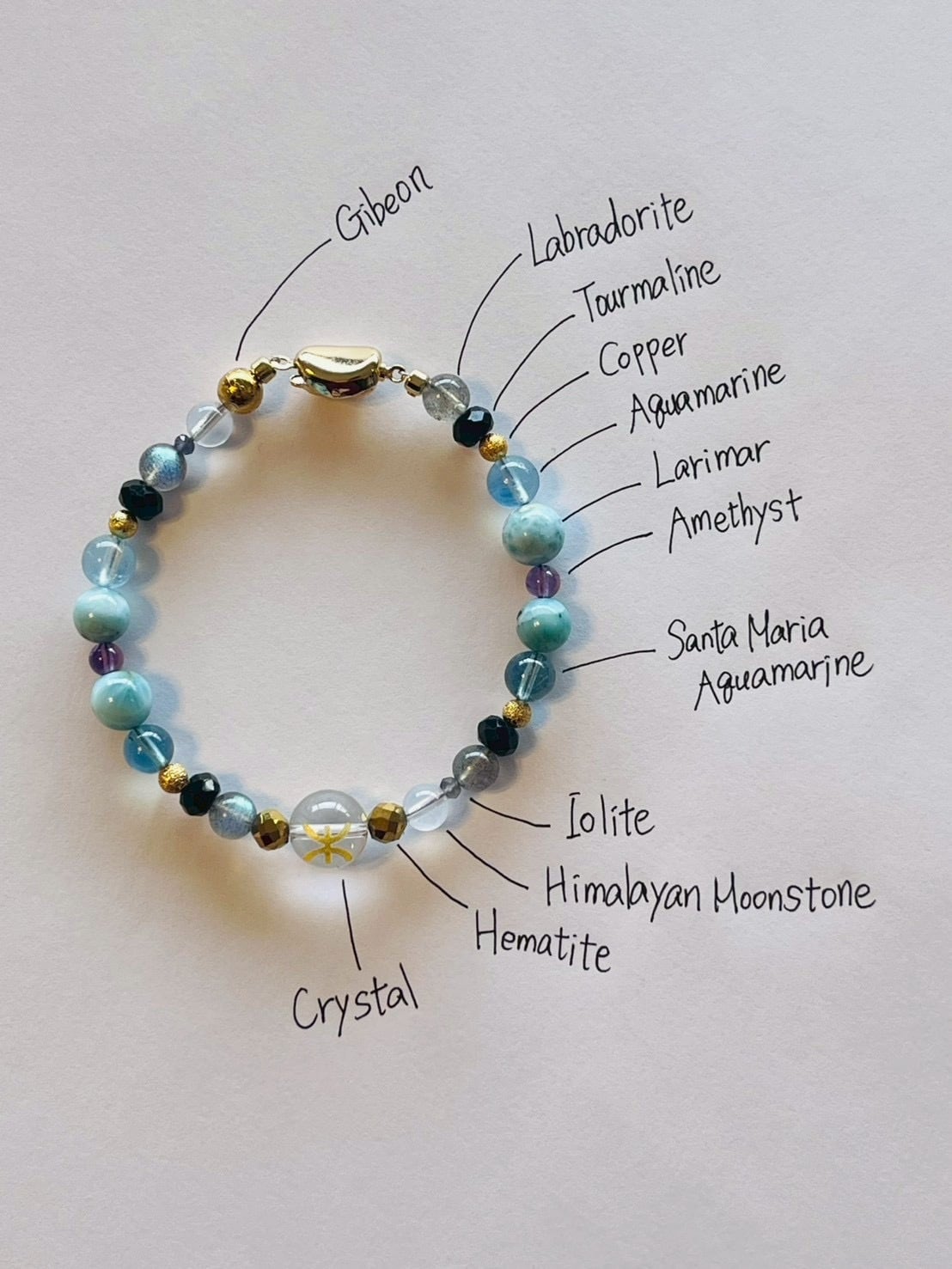 海の石(アクアマリン/ラリマー)が波のように浄化と癒しを循環